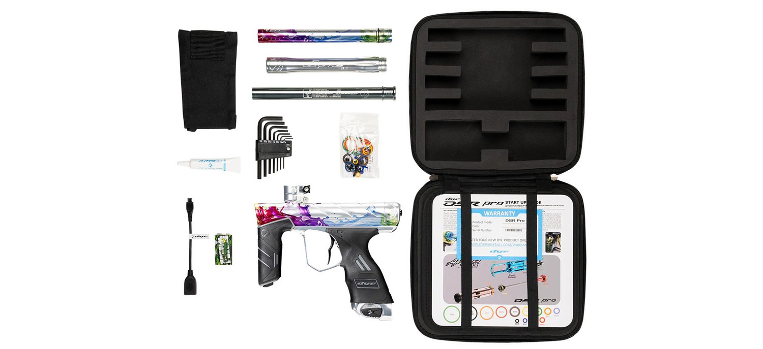 Der Dye DSR PRO Markierer hebt die Performance auf ein völlig neues Level. Er kombiniert Präzision, Kontrolle und Komfort mit High-End-Features, die bisher nur als teures Zubehör erhältlich waren. Das Iron Man Pro Kit sorgt für maximale Effizienz und Konstanz, während das UL-i Lauf-System  mit einem .688 Aluminium Einsatz für messerscharfe Präzision steht. Das überarbeitete, aggressive Design macht nicht nur optisch Eindruck – es unterstreicht die Power, die in diesem Markierer steckt. Der feinjustierbare Abzug gibt dir die volle Kontrolle direkt aus der Box, während das neue Leverlock Clamping Feedneck mit verbessertem Einstellrad müheloses Feintuning und bombenfesten Halt garantiert. Alles am DSR Pro Marker wurde entwickelt, um dich noch besser zu machen. Natürlich sind die bewährten Top-Features weiterhin am Start: Das ARC Bolt System liefert unübertroffene Effizienz und ultra-konstante Schussfolgen. Das Flex SFR Solenoid lässt dich den Luftstrom individuell anpassen – für genau das Schussgefühl, das du willst. Der neue Quick-Acess Batterieverschluss macht Batteriewechsel schneller und unkomplizierter als je zuvor. DYE’s legendäre Sticky Grips bieten maximalen Komfort und einen perfekten Grip, der sich anfühlt, als wäre er für deine Hand gemacht. In Kombination mit der optimierten Ergonomie des Frontgriffs garantiert der DSR PRO absolute Kontrolle und Präzision – egal, wie du spielst. Der DSR PRO ist mehr als nur ein Markierer – er ist die Spitze einer Plattform, die getestet, bewährt und gefeiert wird. Jetzt mit mehr Power als je zuvor.   Premium Features (Inklusive beim DSR Pro Marker):