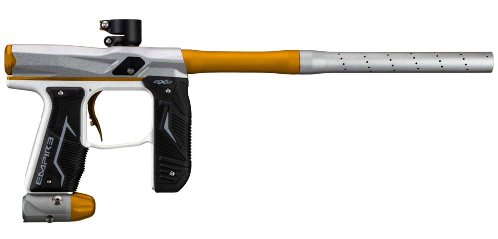 Die Empire AXE 2.0 im Cal. 68 - die verbesserte Version von der Empire Mini. Die Axe ist nicht nur leiser und schneller sondern ist jetzt noch 10 % leichter. Wer große Hände hat. Wer groé Hände hat, hat trotzdem kein Probleme, der Empire Axe kommt mit einem großen Triggerguard. Wer bedenken über die Wartung des Markierers hat, muss sich keine Sorgen machen, durch des überarbeiteten Druckknopf-Systems ist die Reinigung / wartung ein Kinderspiel. In wenigen sekunden kann man ohne Werkzeug den Bolzen ganz leicht herausziehen. Ein weiteres Update sind die neu angebrachten Augen am Markiererkorpus, somit kann man diese schneller reinigen oder austauschen wenn nötig, im gegensatz zur alten Empire Axe.