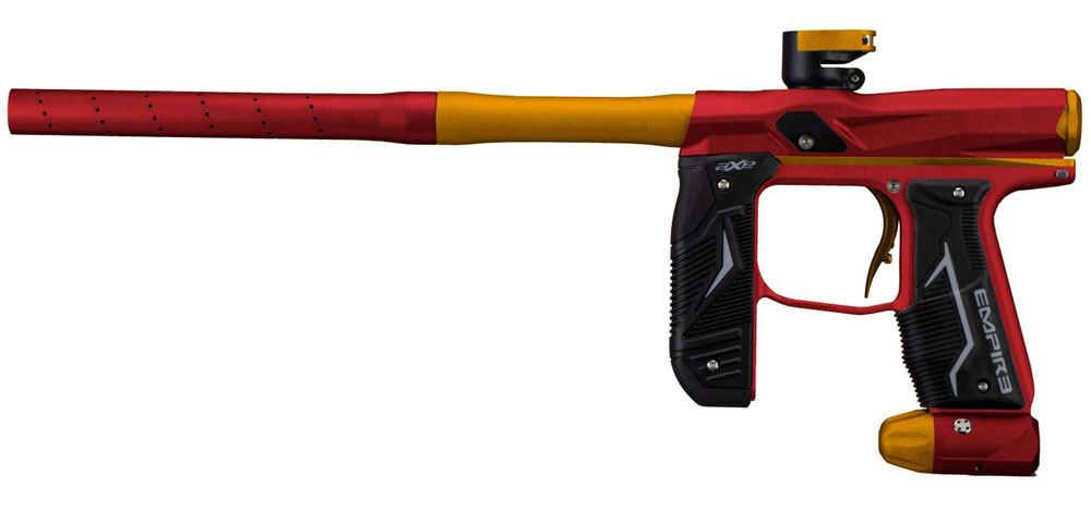 Die Empire AXE 2.0 im Cal. 68 - die verbesserte Version von der Empire Mini. Die Axe ist nicht nur leiser und schneller sondern ist jetzt noch 10 % leichter. Wer große Hände hat. Wer groé Hände hat, hat trotzdem kein Probleme, der Empire Axe kommt mit einem großen Triggerguard. Wer bedenken über die Wartung des Markierers hat, muss sich keine Sorgen machen, durch des überarbeiteten Druckknopf-Systems ist die Reinigung / wartung ein Kinderspiel. In wenigen sekunden kann man ohne Werkzeug den Bolzen ganz leicht herausziehen. Ein weiteres Update sind die neu angebrachten Augen am Markiererkorpus, somit kann man diese schneller reinigen oder austauschen wenn nötig, im gegensatz zur alten Empire Axe.