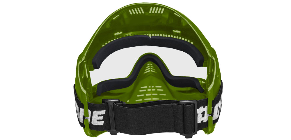 Die neue Field #ONE Maske bietet ein Sichtfeld von 260° und ein Glaswechsel geht sehr schnell und unkompliziert. Die Maske ist aus einem Stück gegossen und ist daher sehr stabil. Der Visor ist ebenfalls integriert. Die Lüftungsschlitze ermöglichen gute Durchlüftung und Kommunikation mit anderen Spielern während des Spiels.