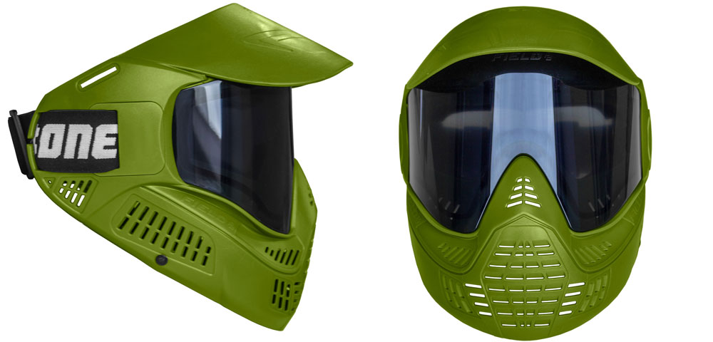 Die neue Field #ONE Maske bietet ein Sichtfeld von 260° und ein Glaswechsel geht sehr schnell und unkompliziert. Die Maske ist aus einem Stück gegossen und ist daher sehr stabil. Der Visor ist ebenfalls integriert. Die Lüftungsschlitze ermöglichen gute Durchlüftung und Kommunikation mit anderen Spielern während des Spiels.