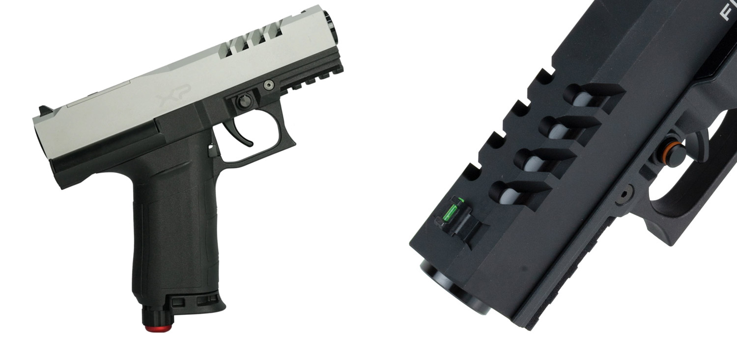 Die neue First Strike XP MagFed Paintball Pistole ist der offizielle Nachfolger der First Strike FSC. Die XP wurde gegenüber dem Vorgängermodell in Sachen Optik und Funktion deutlich überarbeitet. Der Look ist aggressiver geworden, dank spezieller Fresungen an der Vorderseite des Bodys. Für eine bessere Zielerfassung wurde bei der XP ein neues Kimme und Korn Zielabsehen mit grünem Fieberglas verbaut, dass sich unter Tageslicht selbst beleuchtet. Statt einer 8g Co2 Kapsel, wie beim Vorgänger, verwendet die First Strike XP nun die deutlich größeren 12g Co2 Kapseln. Damit kann man problemlos 3 Magazine und mehr mit einer Füllung verschießen. Die Co2 Kapsel ist nun auch nicht mehr im Magazin untergebracht, sondern separat gelagert mit einem Quick-Start Button. Einfach draufhauen und die Kapsel ist angestochen, schon ist der Markierer einsatzbereit. Die Magazine sind bei der neuen XP deutlich günstiger geworden. Möglich macht es der neue Aufbau, ohne die integrierte Co2 Kartusche. So fällt Material bei der Produktion weg. Selbstverständlich fassen die Magazine weiterhin 6 Schuss Roundballs oder First Strike Paintballs. Ansonsten wurden alle bewährten Features des Vorgängermodells beibehalten. Die First Strike XP überzeugt durch ihre kompakte Bauweise und die hohe Konstanz und Zielgenauigkeit, auch auf große Schussdistanzen. Eine der wenigen Pistolen im Markt, die serienmäßig Cal. 68 First Strike Geschosse verschießen kann.