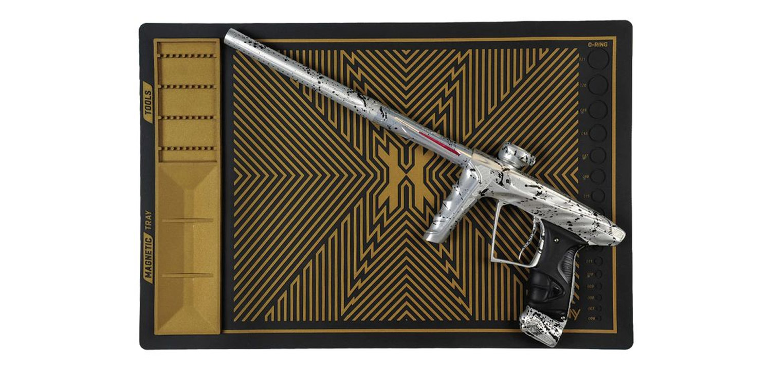 Die MAGMAT aus robusten Silikon ist eine großflächige und praktische Techmatte von HK Army. Diese Techmatte bietet Platz für diverse Innensechskantschlüsse, Schrauben, O-Ringe und andere Kleinteile. Zur schnellen Identifizierung von O-Ringen befinden sich rechts praktische O-Ring-Größenschablonen.