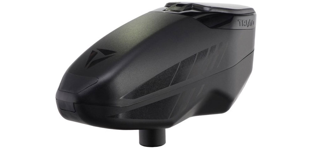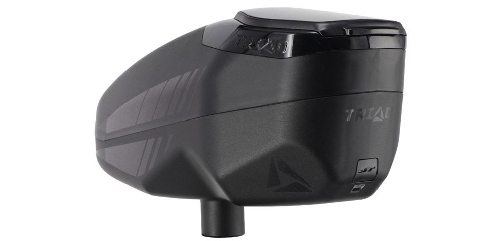 Tonaktivierung und Infrarotaugen - Die Kombination aus Tonaktivierung und Infrarotaugen hilft dem Triad, Paintballs konsequent in den Markierer zu führen. Der Loader beginnt zu füttern, wenn der Markierer zum ersten Mal schießt und Spannung auf die Paintballs ausübt. Die Infrarotaugen erkennen, wenn das Feed gefüllt ist und verhindert, dass sich der Motor weiterdreht.