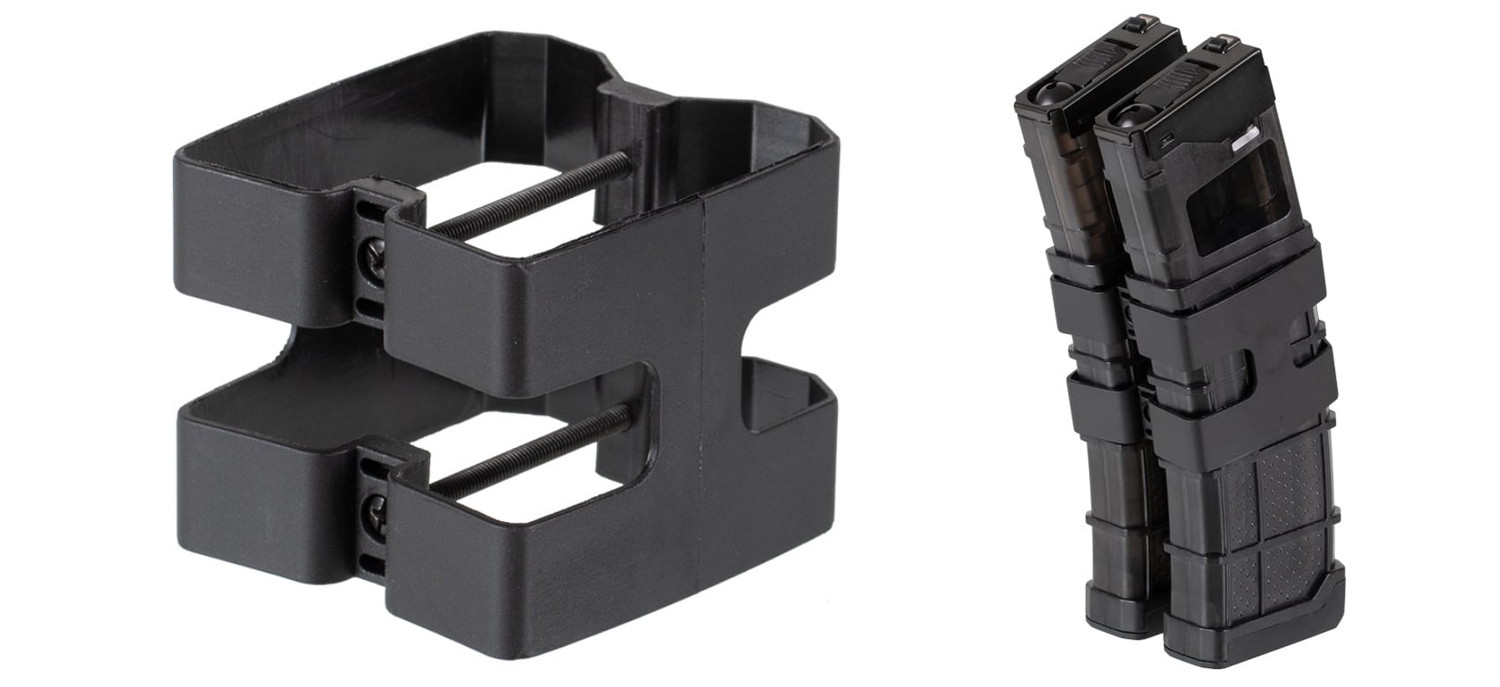 Die Mag-Coupler für First Strike T15 V2 Magazine sind aus flexiblem aber dennoch sehr belastbaren Kunststoffmaterial gefertigt und werden mittig fest verschraubt. Kein Wackeln und kein Rascheln, mit diesen Magazinverbindern sitzen die Magazine garantiert fest und sicher zusammen.