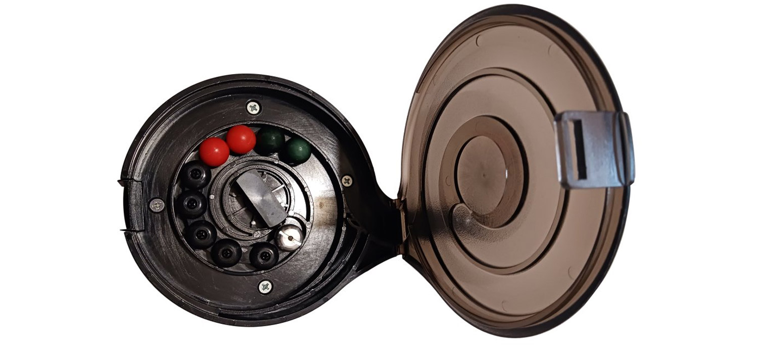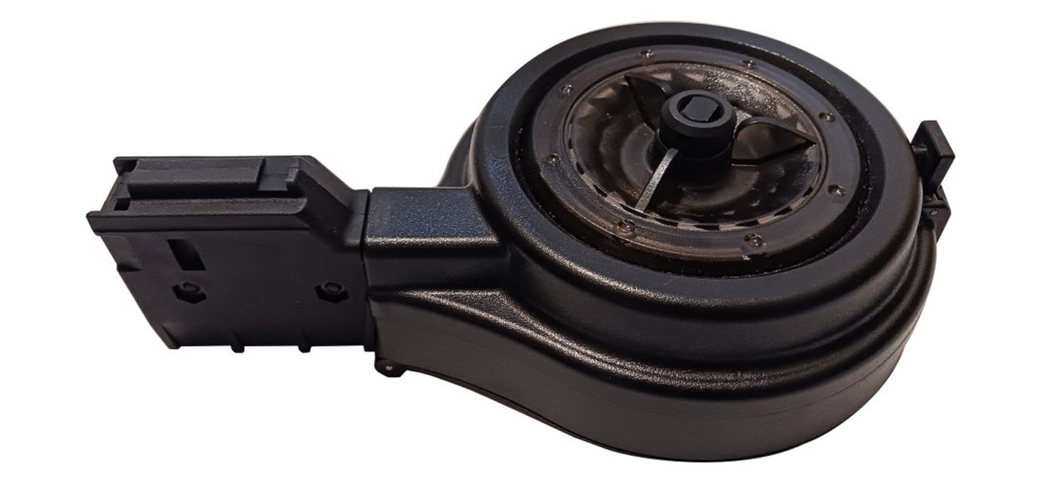 Das Trommelmagazin bietet Platz für 32 Schuss Paintballs mit Projektilen und .68-Kaliber-Paintballs. Das herausragende Merkmal ist die branchenweit erste einstellbare Federspannung. So lässt sich die Zuführung für brüchige Turnier-Paintballs anpassen oder die Spannung erhöhen, um schwerere und massive Projektile zuverlässig zuzuführen. Diese Flexibilität beseitigt die üblichen Nachteile älterer Trommelmagazine und macht den Federwechsel beim Munitionswechsel überflüssig.