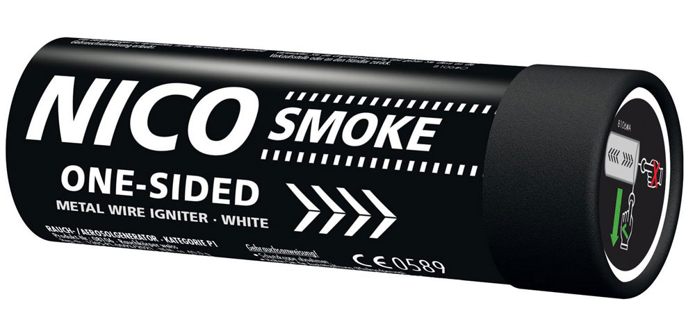 Die Rauchkörper von Nico erzeugen einen dichten Farbrauch, der aus einer Öffnung austritt. Die Brenndauer beträgt etwa 80 Sekunden.