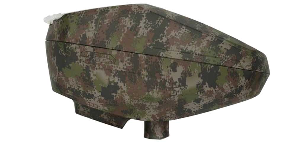 Das Herzstück bildet die verkapselte Lichtschranken-Einheit, welche vor Feuchtigkeit sowie Dreck geschützt ist. Durch die Lichtschranke weiß die Elektronik, wann Du schießt und fördert nur dann Paintballs, wenn es notwendig ist. Dieses Funktionsprinzip ist sehr energieeffizient und 12+ BPS (Bälle pro Sekunde) sind ohne Probleme möglich.