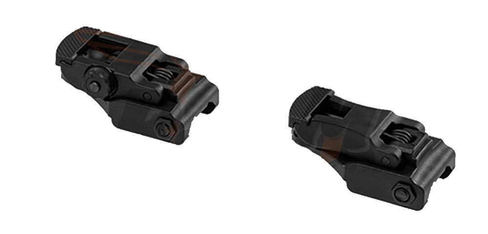 Dieses hochwertig verarbeitete Klappvisierungsset besteht aus Klappkorn und Klappdiopter ("Kimme & Korn"). Diese sind kompatibel mit jeder Standard Picatinnyschiene. Springt durch Druck auf den Auslöser hoch und kann nach Gebrauch einfach wieder weggeklappt werden. Das hintere Visier ist seitlich verstellbar. Das Absehen kann zusätzlich zweifach verstellt werden (feinere und gröbere Zielerfassung). Höhe der Visierung entspricht der M 16 Standard Visierung , ca. 5 cm hoch im ausgeklappten Zustand. Zwei Lochgrößen, groß (4,7mm) für Nahdistanzen und klein (1,8mm) für weitere Entfernungen.