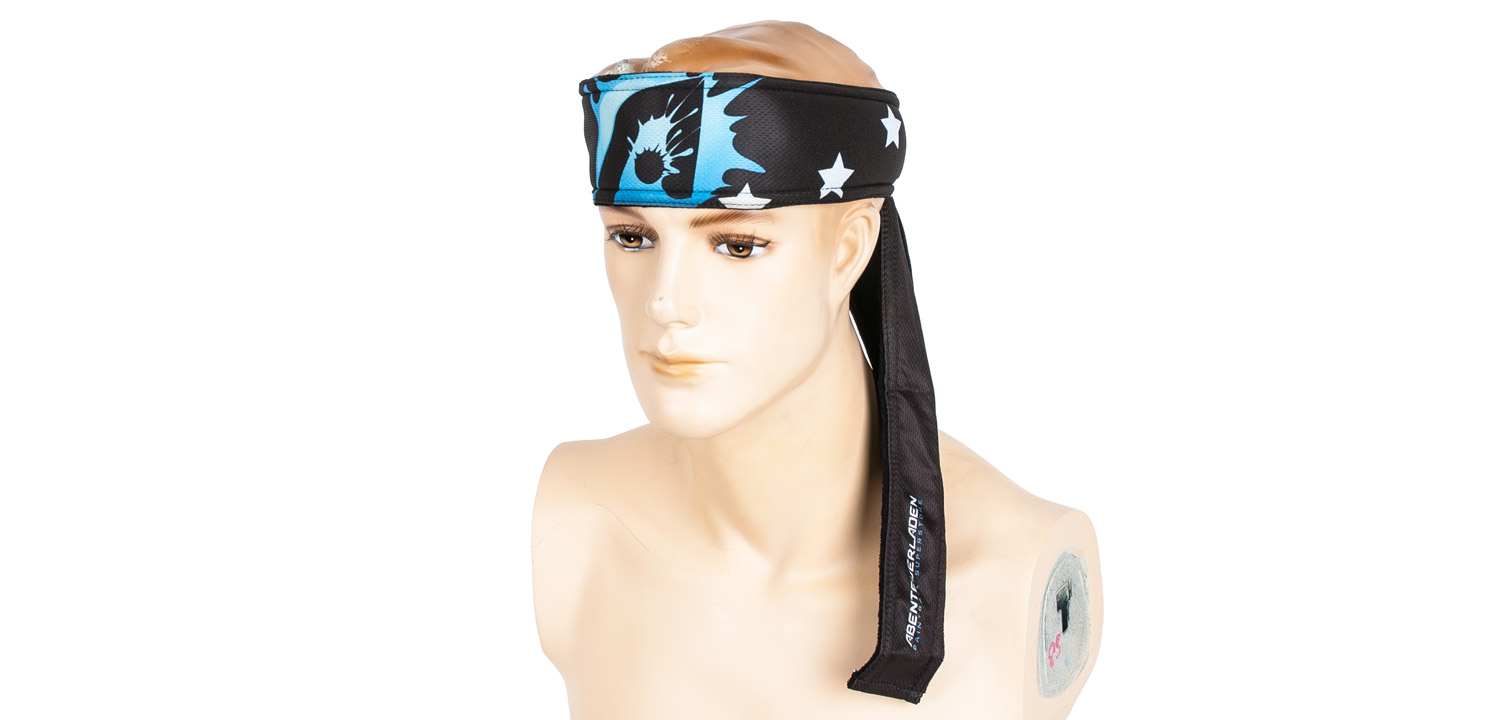Das Bandana hat eine verstärkte Stirnpartie.